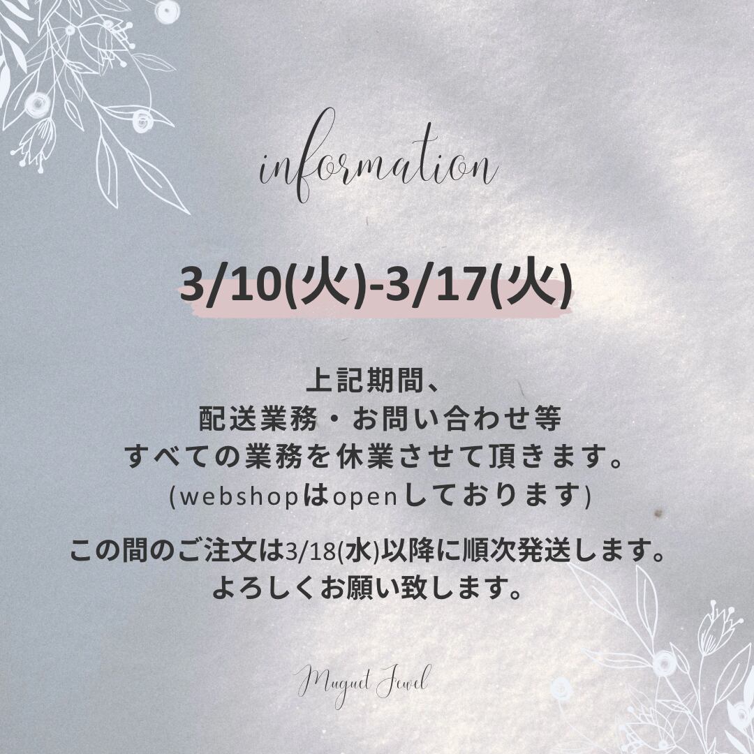 3/17までお休み(3/18より順次発送)