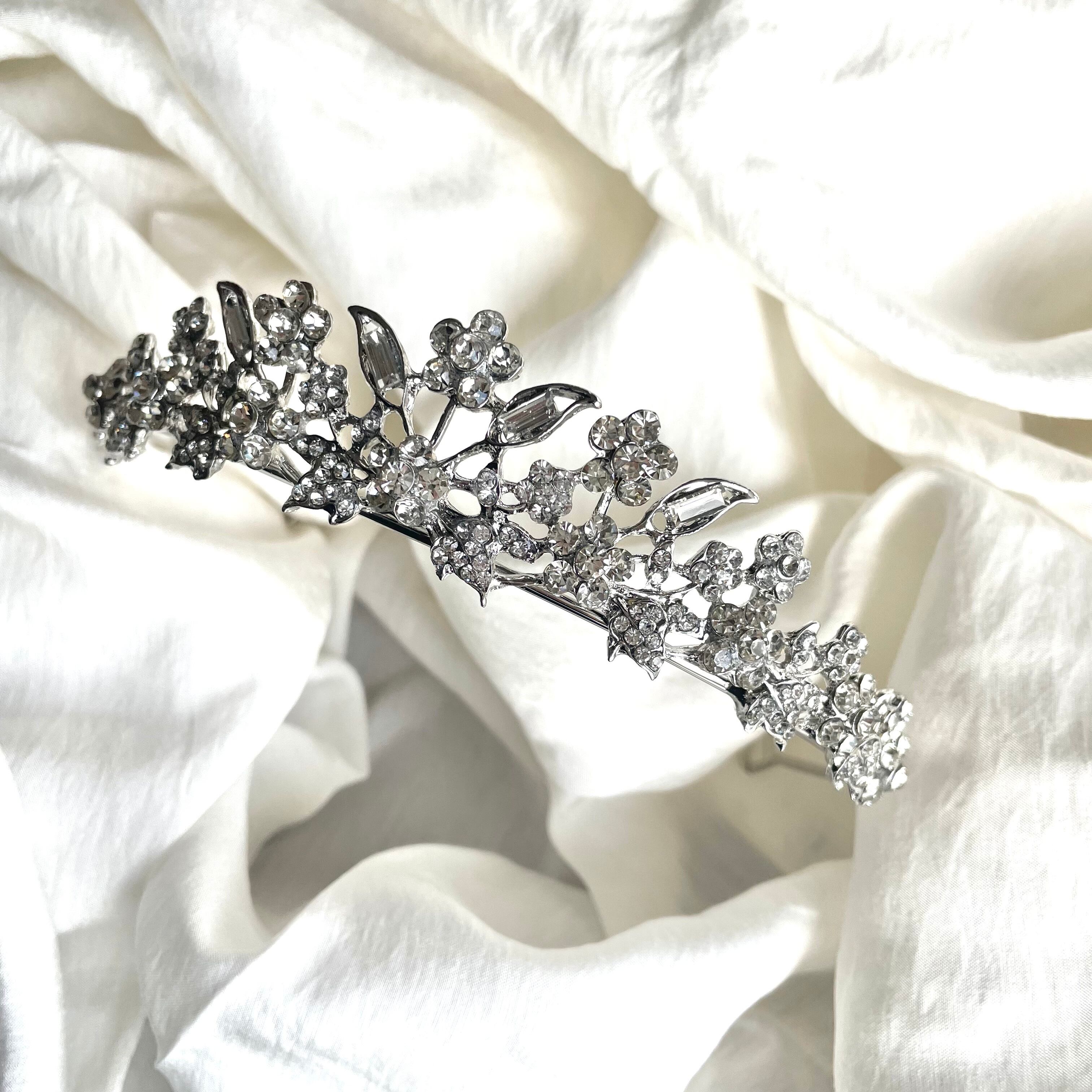 きらびやかなビジューが華やかに輝き、高さも合わせやすく、どんなウェディングドレスにもぴったりなアクセサリーです。